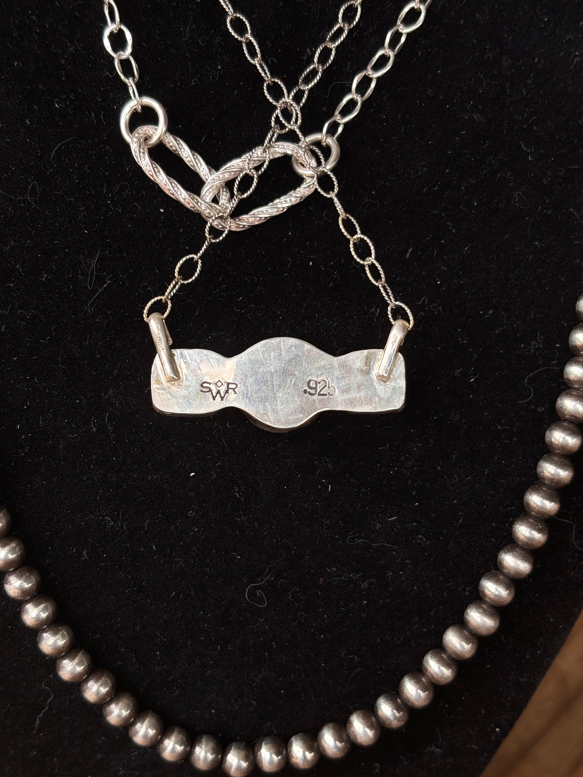 Sonoran mountain turquoise and mother of pearl carved rose set in sterling and fine silver.